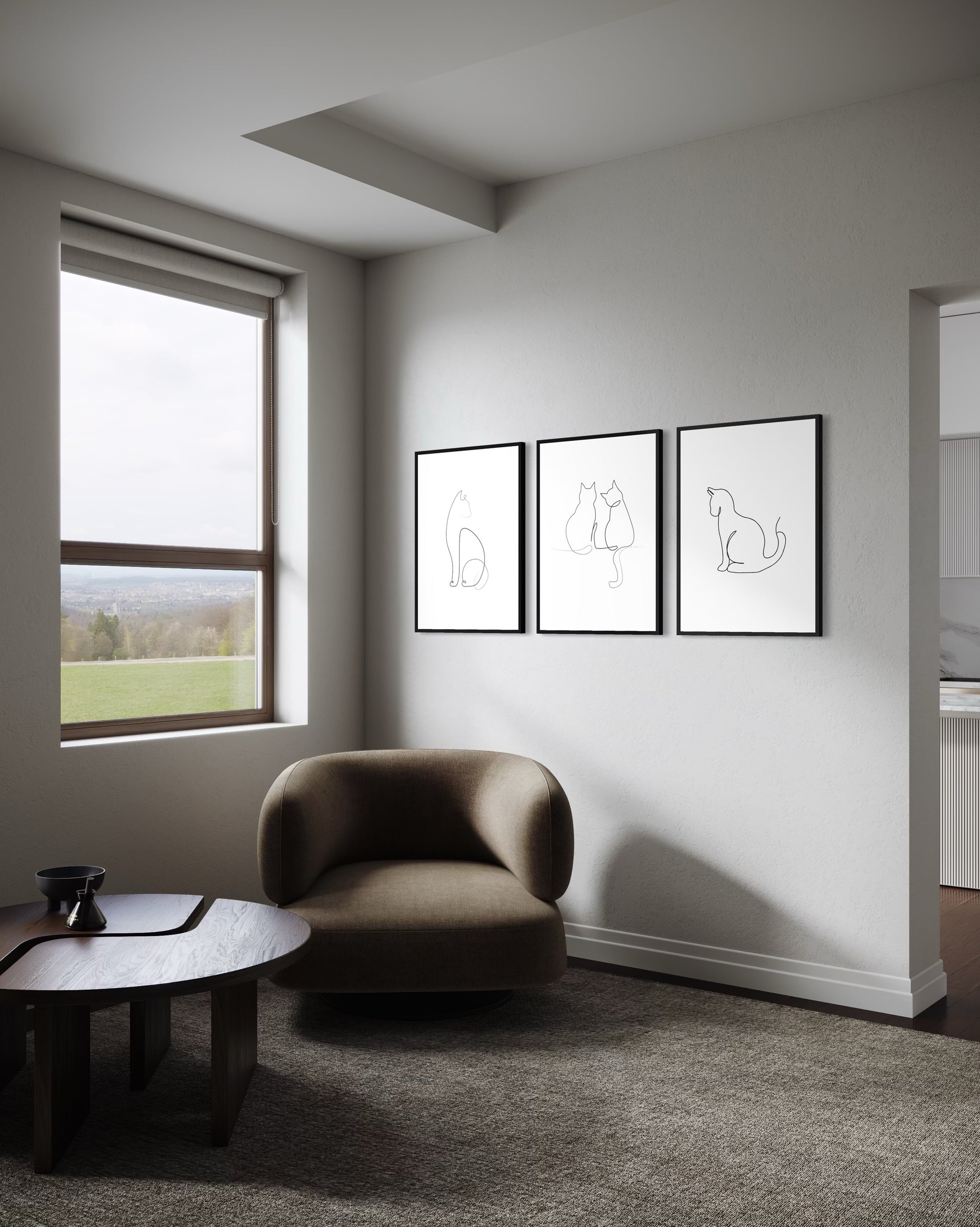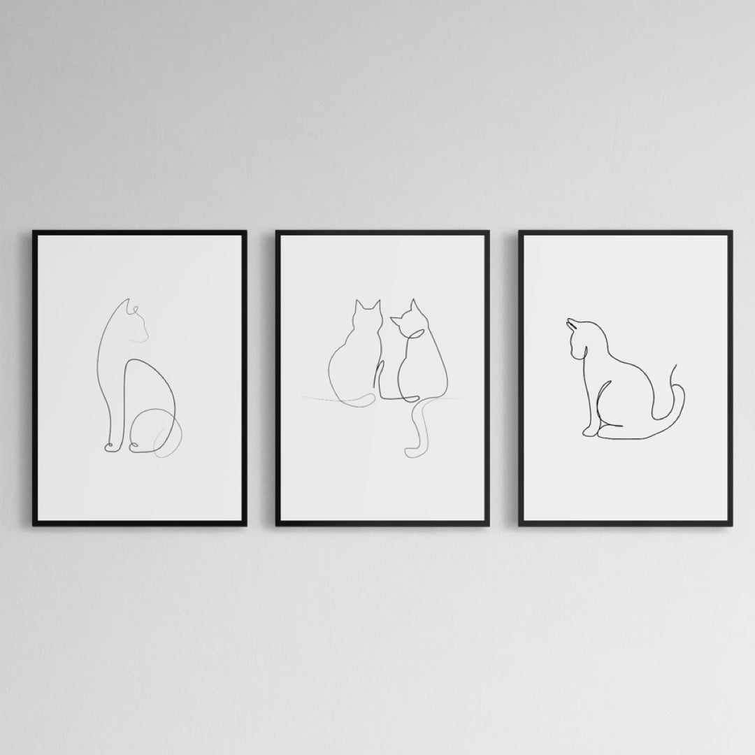 3er-Set Cat lines art