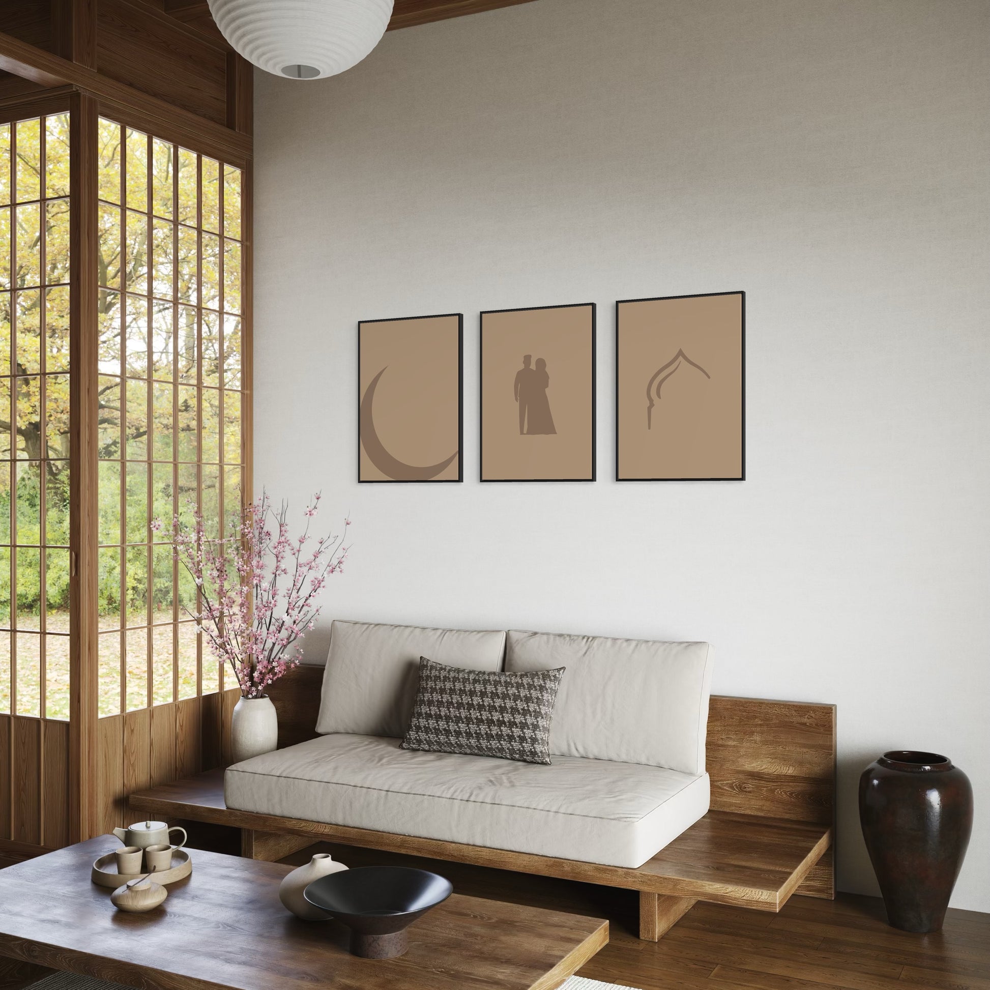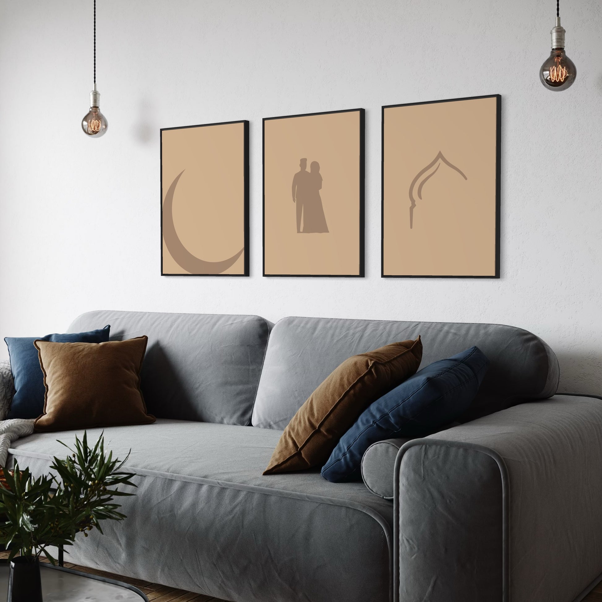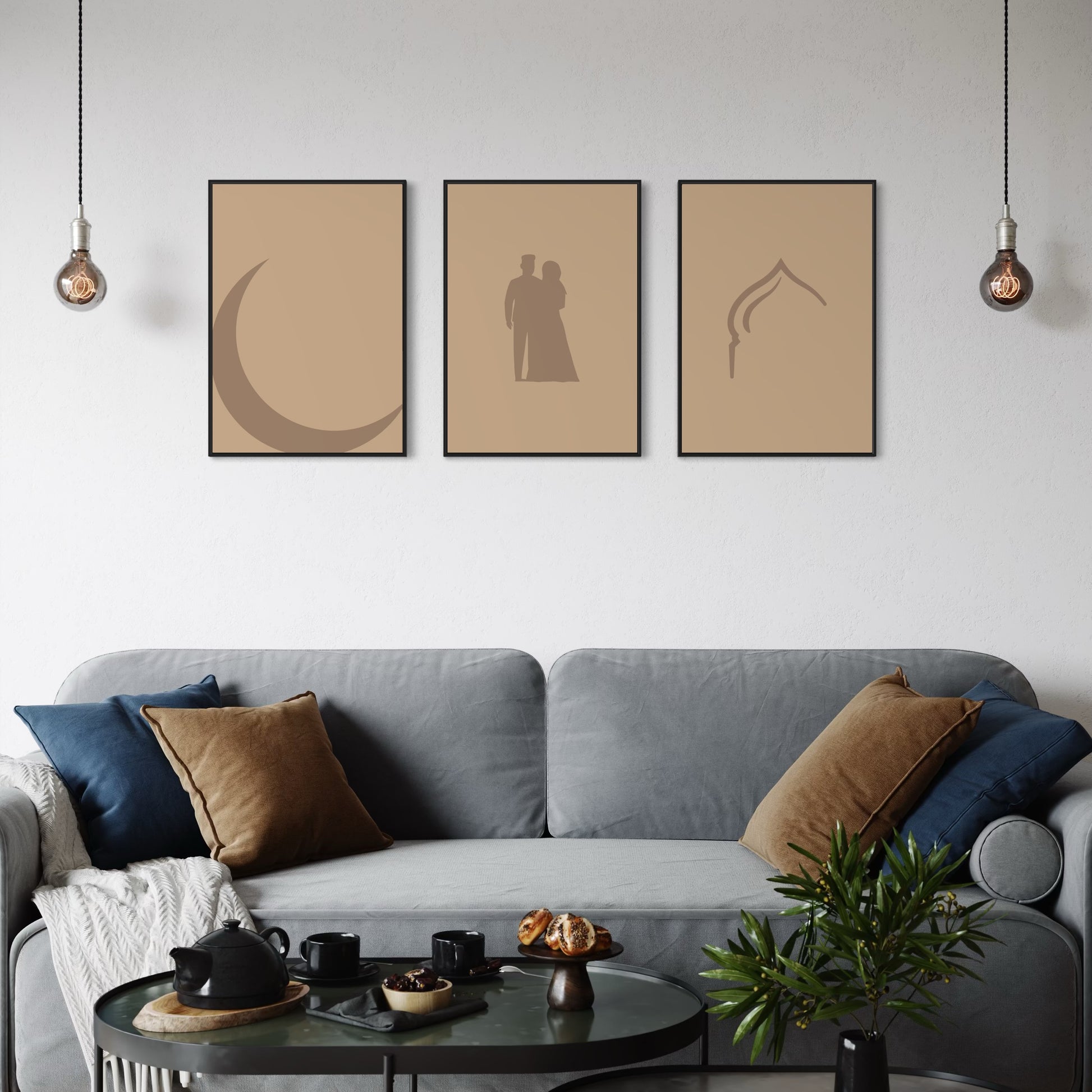 3er-Set moon pair mosque Poster in beige
