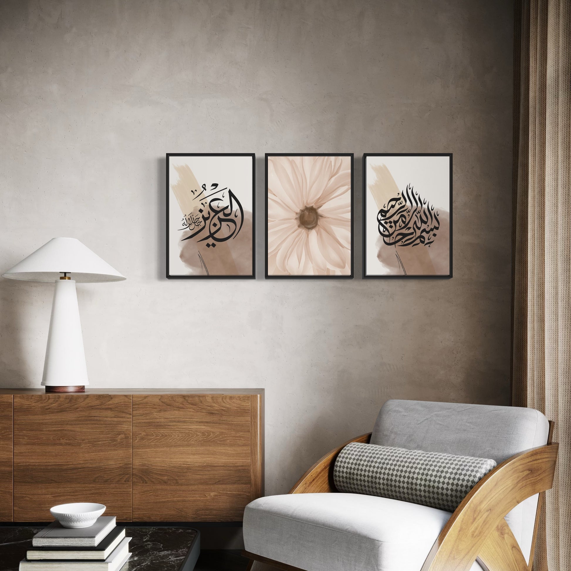 3'lü poster seti EL AZIZ kahverengi-bej